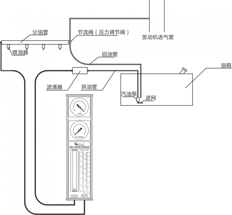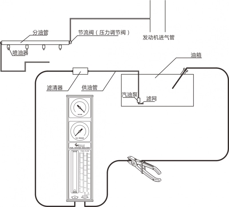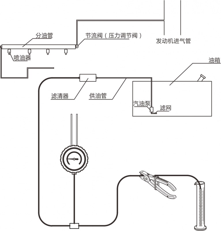 沒有回油管的電子燃油系統(tǒng)檢測連接方法如下: